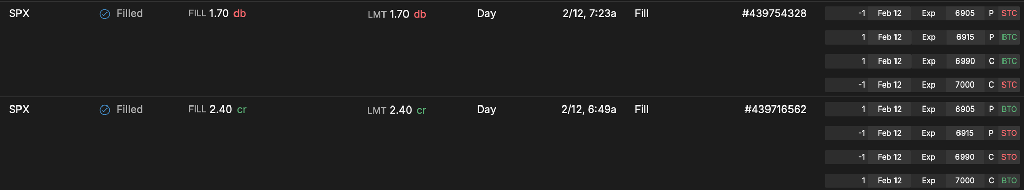 The first one was on Feb 12th - an Iron Condor netting me $70 in 34 minutes.