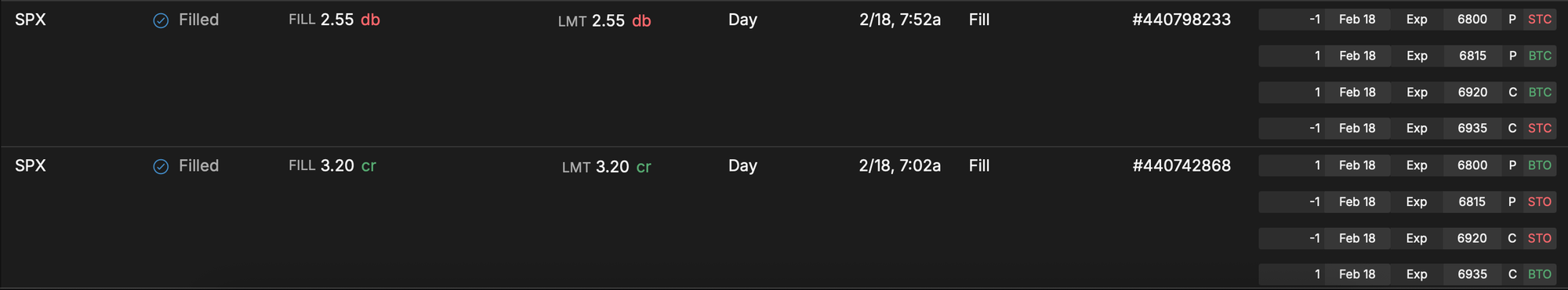 And the second one was on Feb 20th - another Iron Condor netting me $95.