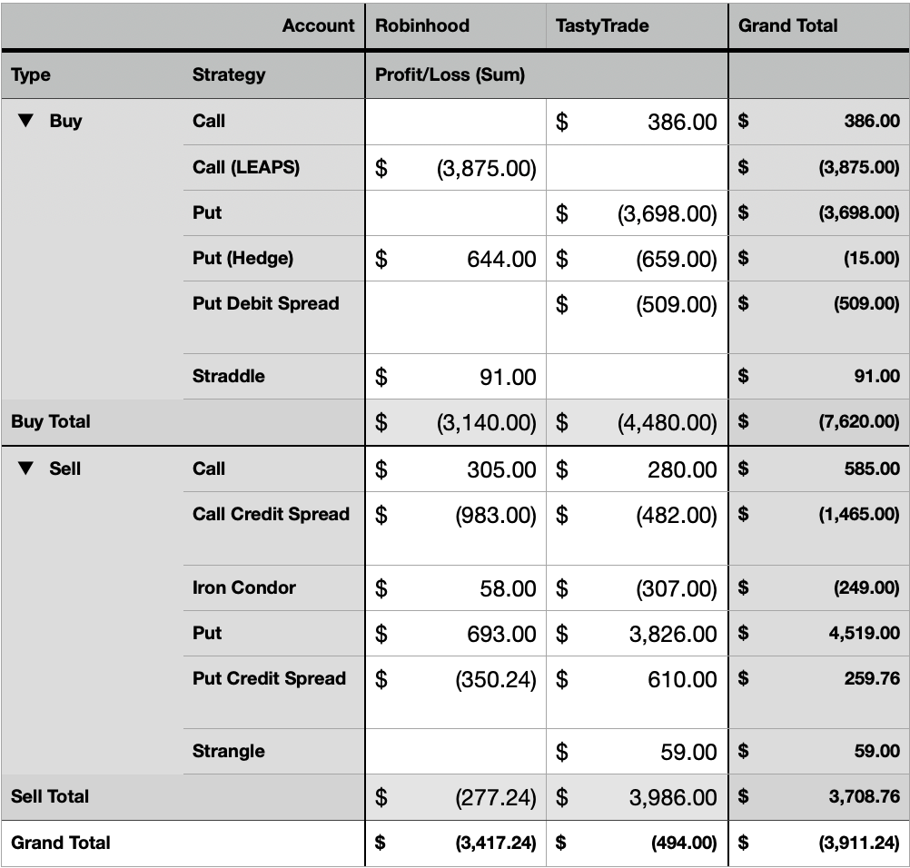Here is a breakdown of P/L by Buy v/s Sell strategies I have used so far.