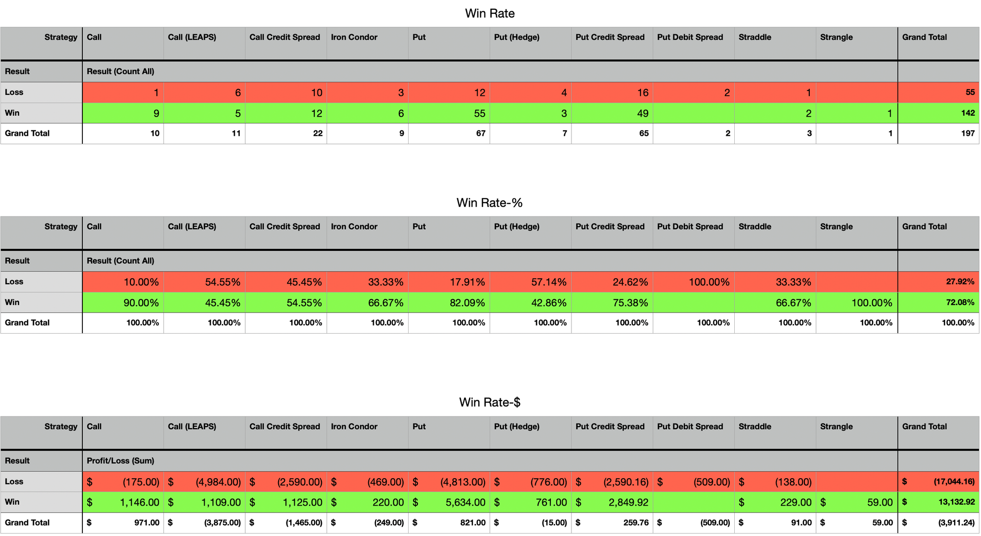 Here's a view showing my Win Rate breakdown by strategy deployed.