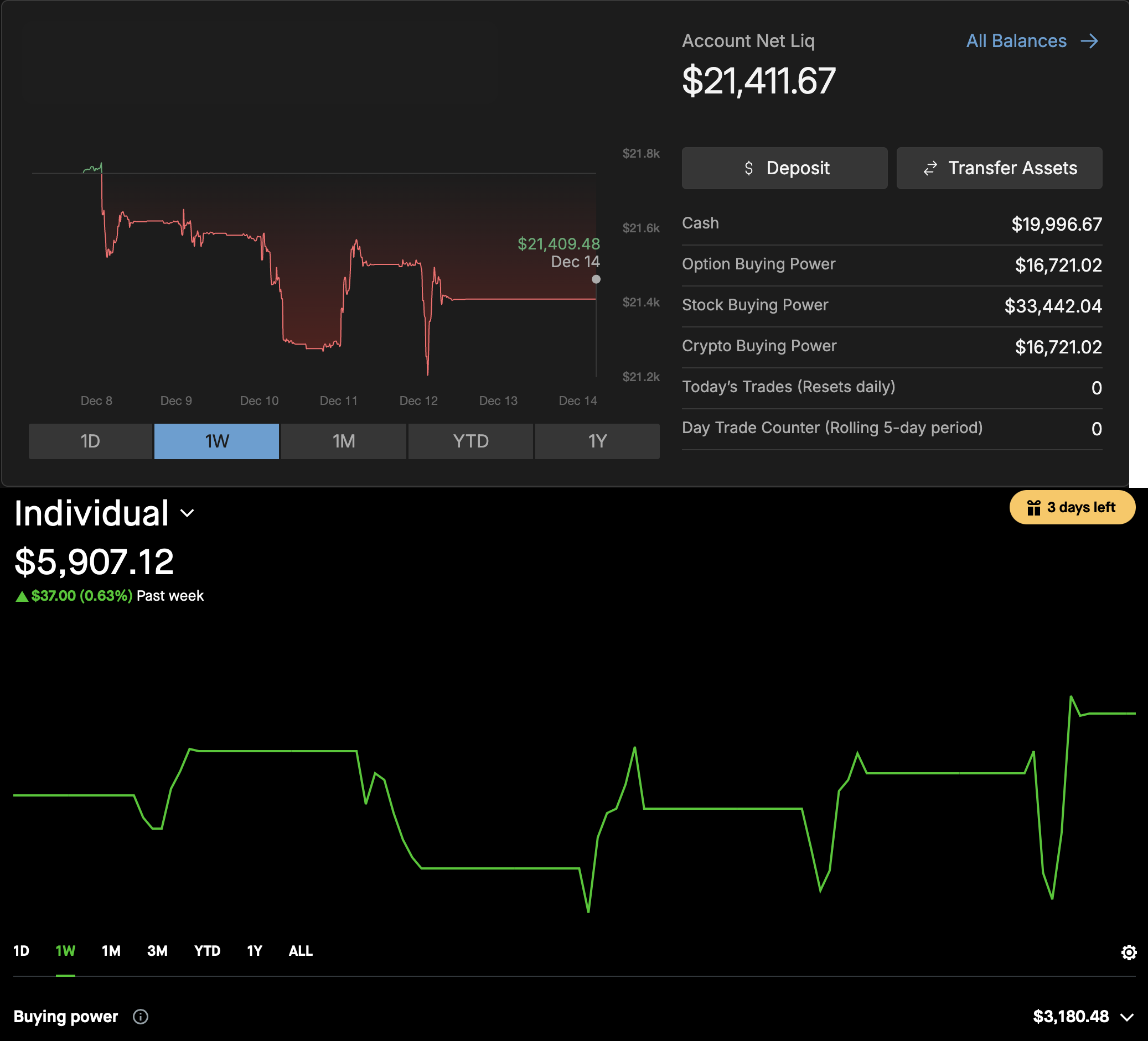 Here is a current snapshot of my TastyTrade and Robinhood portfolios.